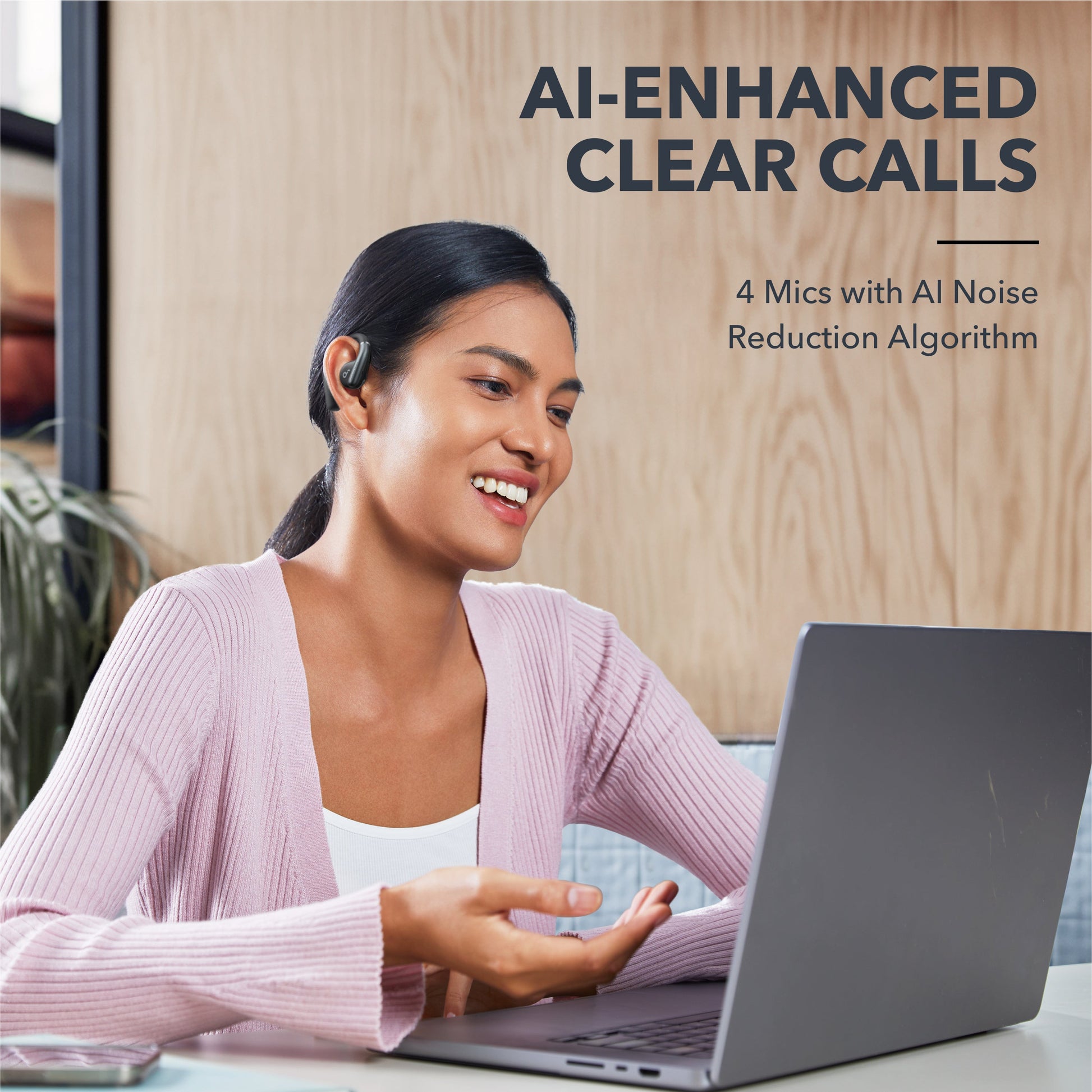 - 4 mics and an AI algorithm for crisp, clear calls.