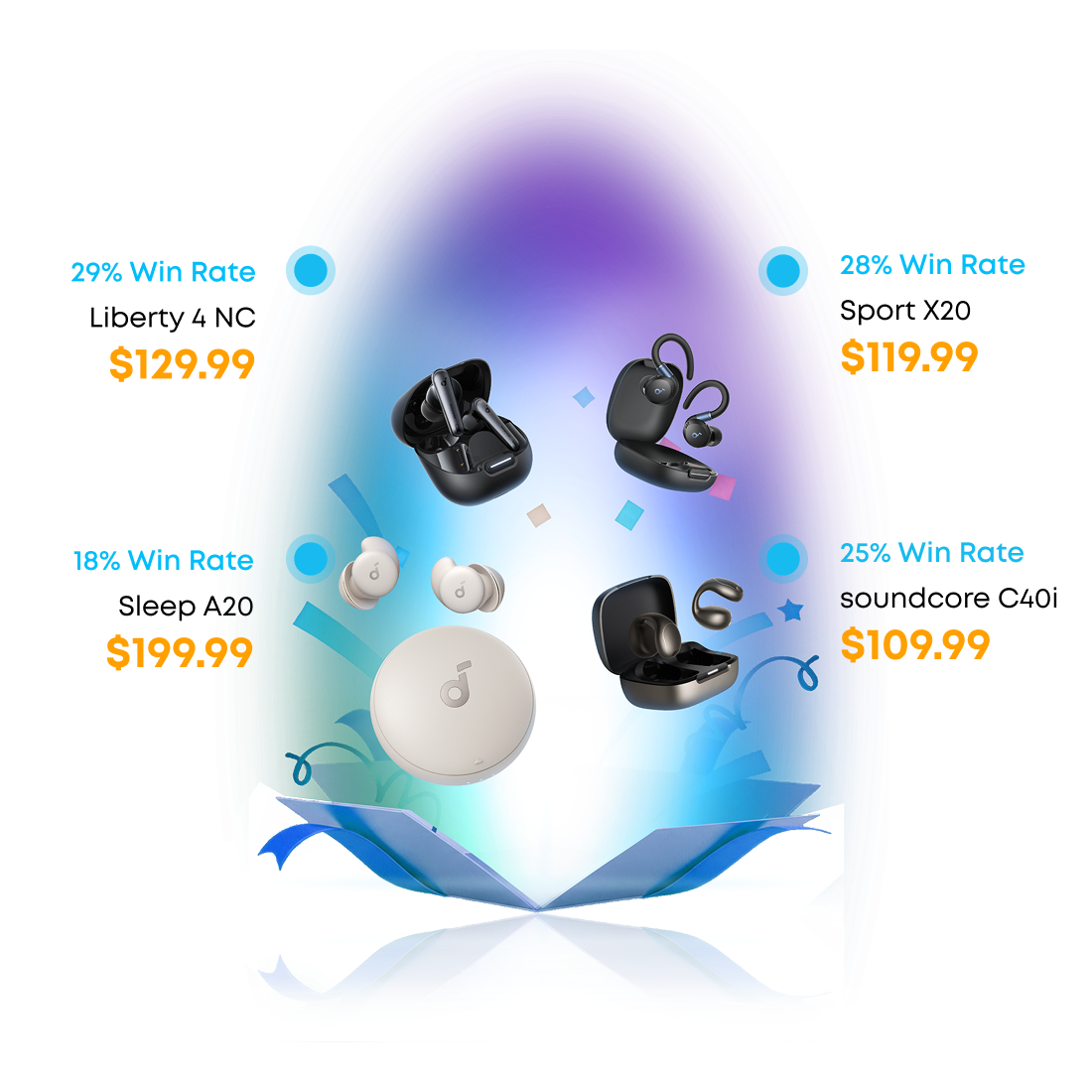 - Mystery box products include: Sleep A20 Earbuds,Liberty 4 NC Earbuds,soundcore C40i Clip-On Earbuds,Sport X20 In-Ear Sport Earbuds with Hook