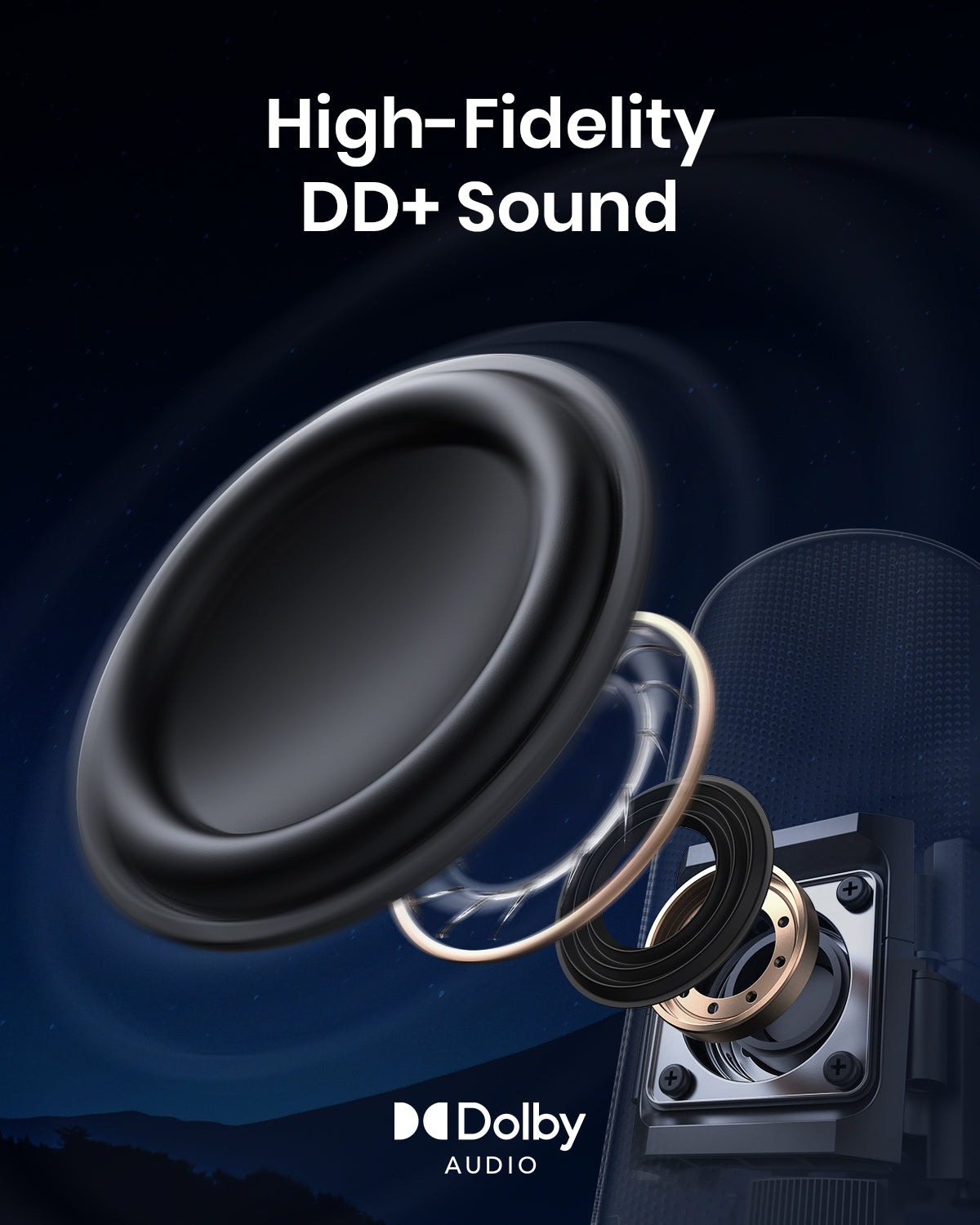 Let Your Ears Connect: Perk up your ears with the clash of swords or an intimate whisper with the powerful 8W Dolby Digital speaker—featuring realistic, high-fidelity sound on the portable projector.Share