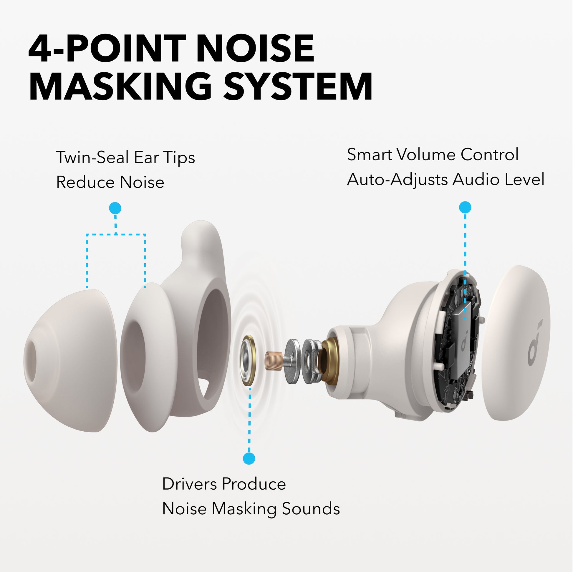 Full Night of Peaceful Sleep: Equipped with a range of features, experience our exclusive 4-Point Noise Masking System, Twin-Seal ear tips with 3x stronger Passive Noise Blocking, sound masking, and Smart Volume Control to prevent unwanted noise.